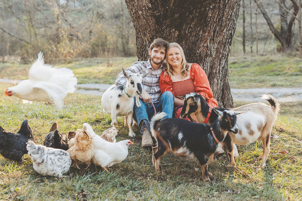 We began our homesteading journey together back in 2019, just before we got married. I ( Andrea) grew up on a farm with cows, horses, goats, sheep, chickens, and more, so this way of life is woven into who I am- and something that I want to pass on for generations to come.